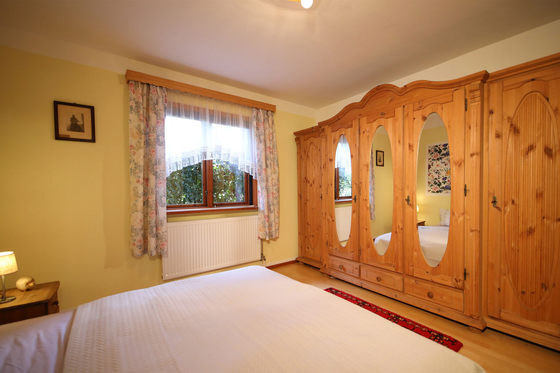 Im Schlafzimmer 1 lädt ein großes Doppelbett zur ungestörten Ruhe ein. Ein großer Kleiderschrank bietet reichlich Platz für Ihre Kleidung.