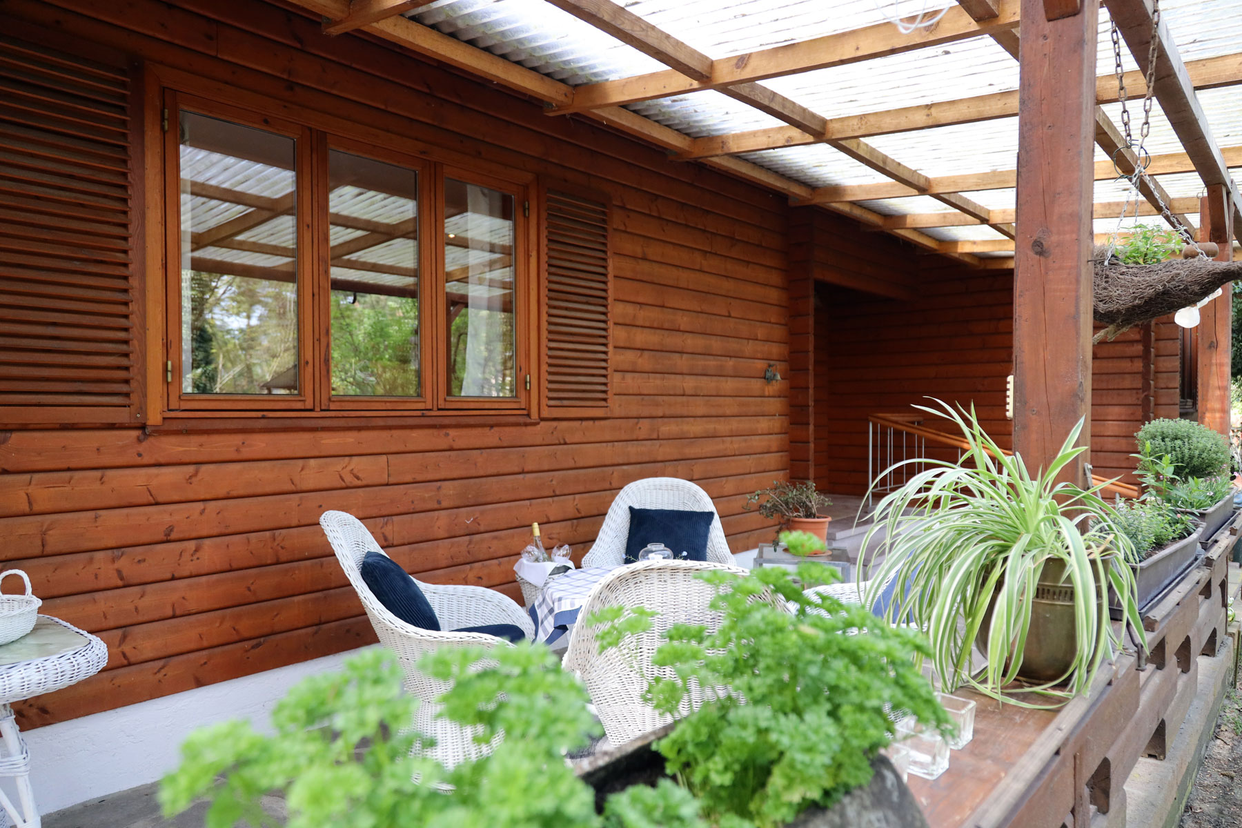 Die Terrasse mit komfortablen Gartenmöbeln lädt zum Relaxen an der frischen Luft geradezu ein.