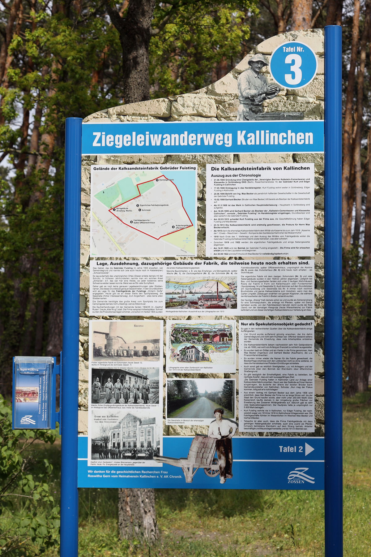 Diverse Wanderwege kreuzen Kallinchen, darunter der Ziegelei-Wanderweg, den man schon nach 150 Metern erreicht, oder verschiedene Rundwanderwege.